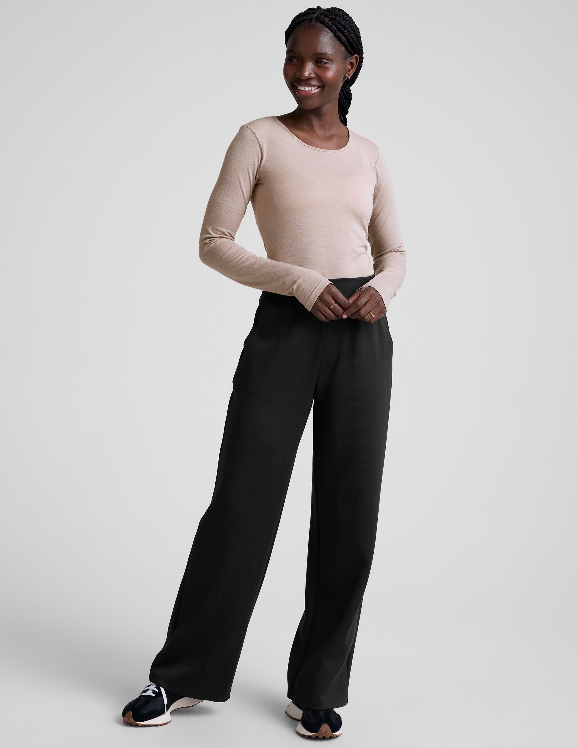 Stay cozy in the LuxeKnit Merino Wool Crewneck. With breathability that makes it perfect for layering and a fitted silhouette that makes it chic on its own. the crewneck is ready to be a chilly day staple in your wardrobe.