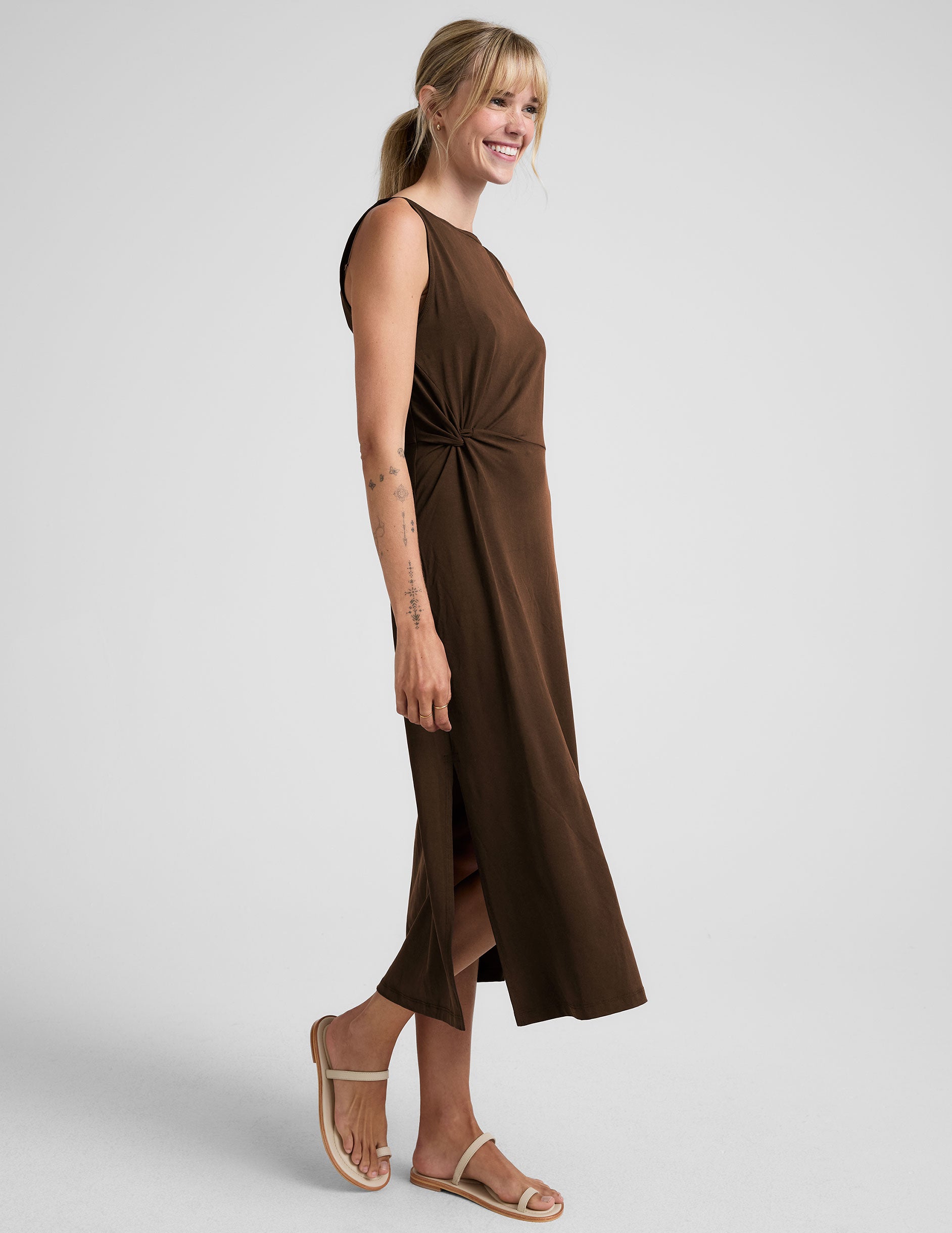 Dress up or down our latest lightweight dress featuring a Bateau neck and side twist for an extra touch of detail. Made from our Aerial Jersey that’s stretchy. bouncy. and perfectly packable for your next vacation.
