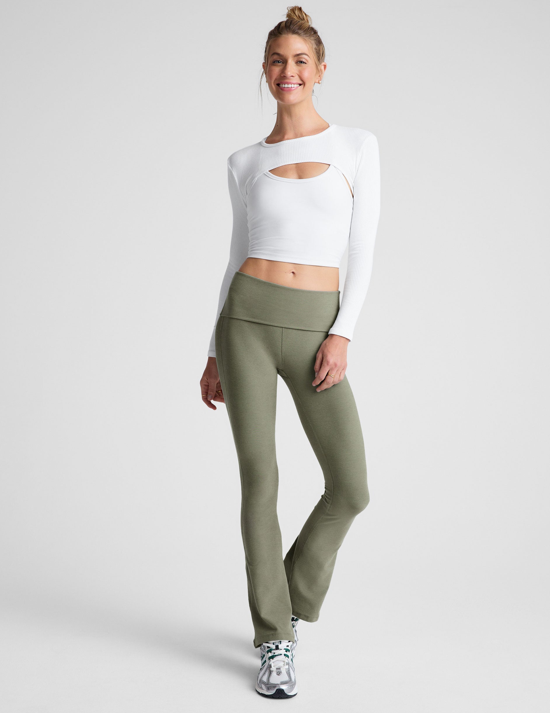 Fitted through the thigh. with a flared ankle and foldover waistband. our new favorite bootcut pant can do both performance and polish. This pair will keep up on extra active days. whether you’re heading to a studio class. squeezing in a weekend hike. or going straight from work to play.