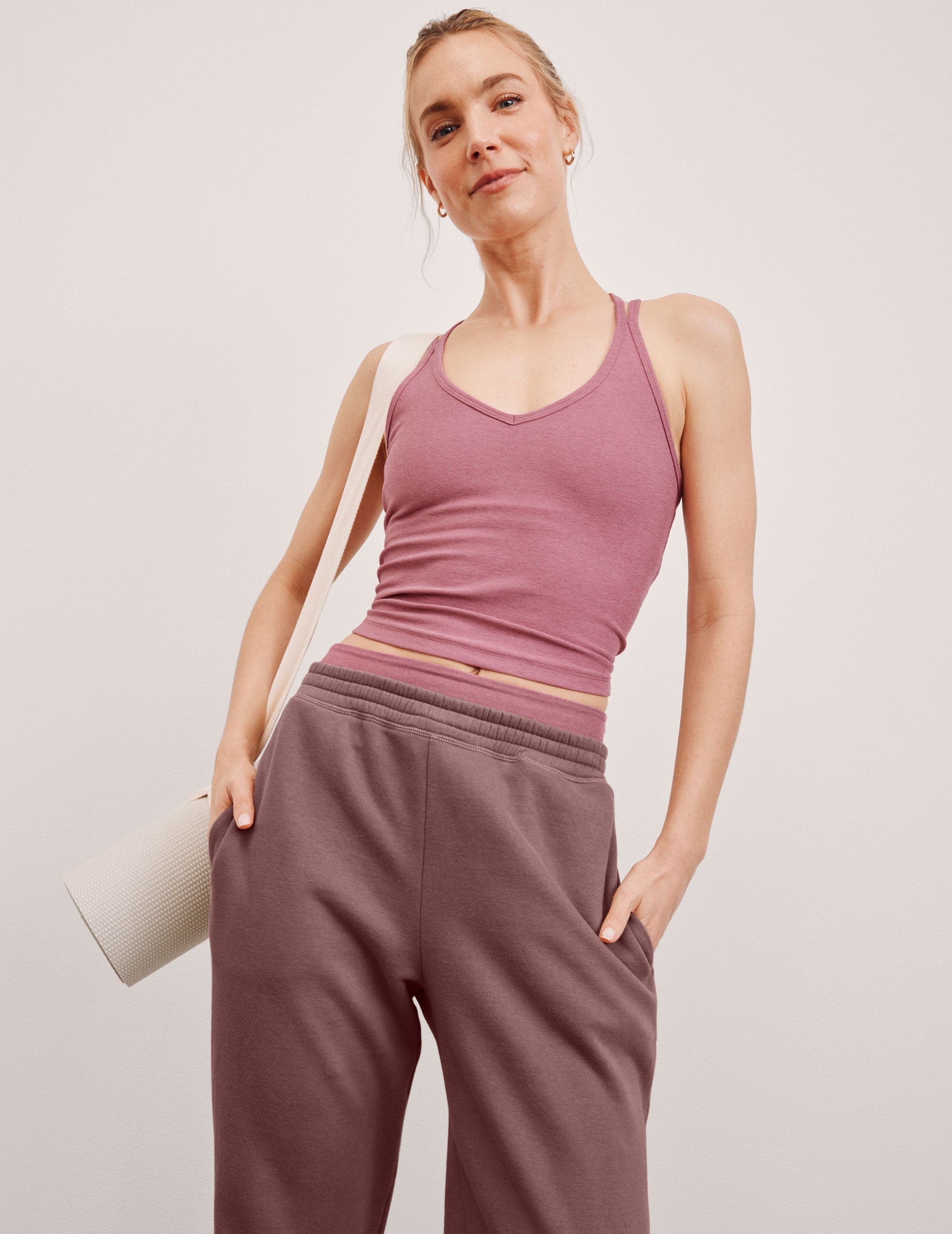We love a strappy tank moment (who doesn’t). Criss-cross straps paired with classic spaghetti straps at back. with a V-neckline at front. finished off with our wear-with-everything waist length. Did we mention a built-in bra? It just doesn’t get any better.