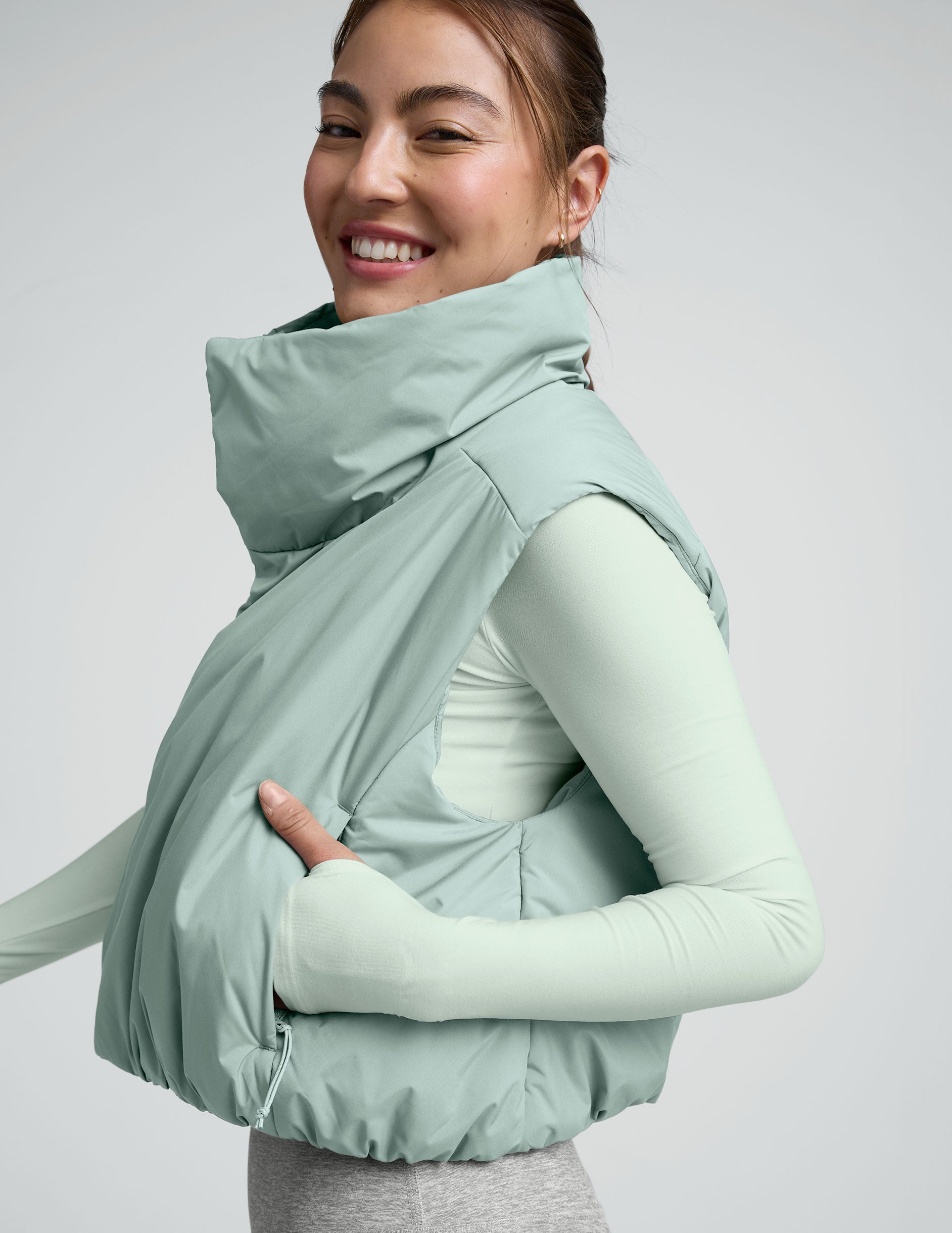 Stay cozy all season. Warm. lightweight. and water repellent. the Warm Up Puffer Vest has an oversized fit for easy layering.?
